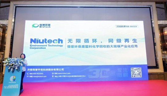 恒譽(yù)環(huán)保以“《無(wú)限循環(huán),同級(jí)再生——恒譽(yù)環(huán)保廢塑料化學(xué)回收的大規(guī)模產(chǎn)業(yè)化應(yīng)用》”為本次大會(huì)帶來(lái)主題演講,當(dāng)前我國(guó)每年產(chǎn)生6000萬(wàn)噸廢舊塑料,不適用物理回收的低值廢塑料占比46%、回收率不足10%,大多采用焚燒填埋處理,如果其中50%采用化學(xué)循環(huán)技術(shù),相當(dāng)于低成本開(kāi)發(fā)了一個(gè)6000萬(wàn)噸的城市油田。針對(duì)行業(yè)的痛點(diǎn)問(wèn)題,恒譽(yù)環(huán)保通過(guò)多年的技術(shù)積累與項(xiàng)目實(shí)踐,自主研發(fā)“工業(yè)連續(xù)化智能廢塑料熱解技術(shù)及成套生產(chǎn)線”,解決了大型熱解生產(chǎn)線應(yīng)用過(guò)程中出現(xiàn)的“裂解系統(tǒng)結(jié)焦、進(jìn)出料難以動(dòng)態(tài)密封、產(chǎn)出物聚合”等多項(xiàng)世界性難題,能夠?qū)鹘y(tǒng)物理技術(shù)難以處理的混合廢塑料、海洋廢塑料、醫(yī)療廢塑料轉(zhuǎn)化為品質(zhì)穩(wěn)定的再生能源產(chǎn)品,后續(xù)通過(guò)深加工可作為生產(chǎn)新塑料的化工原料,真正實(shí)現(xiàn)了同級(jí)化、高值化利用。既減少了對(duì)化石能源的依賴(lài),又降低了碳排放和環(huán)境污染,為全球廢塑料污染治理提供了可驗(yàn)證、可復(fù)制、可推廣的成熟方案,憑借突出的創(chuàng)新性、先進(jìn)性、示范性,該套技術(shù)裝備榮獲中國(guó)科技領(lǐng)域最高獎(jiǎng)項(xiàng)“國(guó)家科學(xué)技術(shù)進(jìn)步獎(jiǎng)”